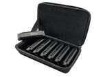 With an attractive dark finish and included zippered case, Hohner's Piedmont Blues set is the perfect seven-piece starter set for those serious about taking up the harp. Seven great blues harps in an eye-catching matte black finish with gold trim. Click